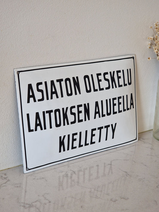 LoppuunmyytyIlmoitusten kiinnittäminen kielletty - emalikyltti