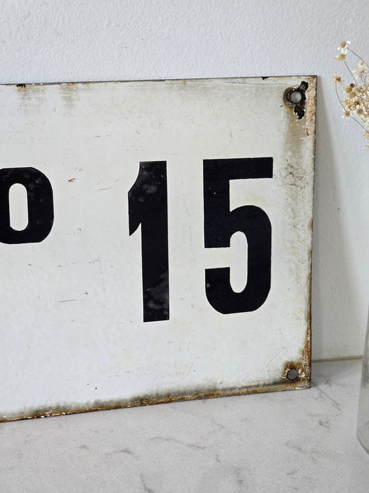 LoppuunmyytyNo 15 emalikyltti