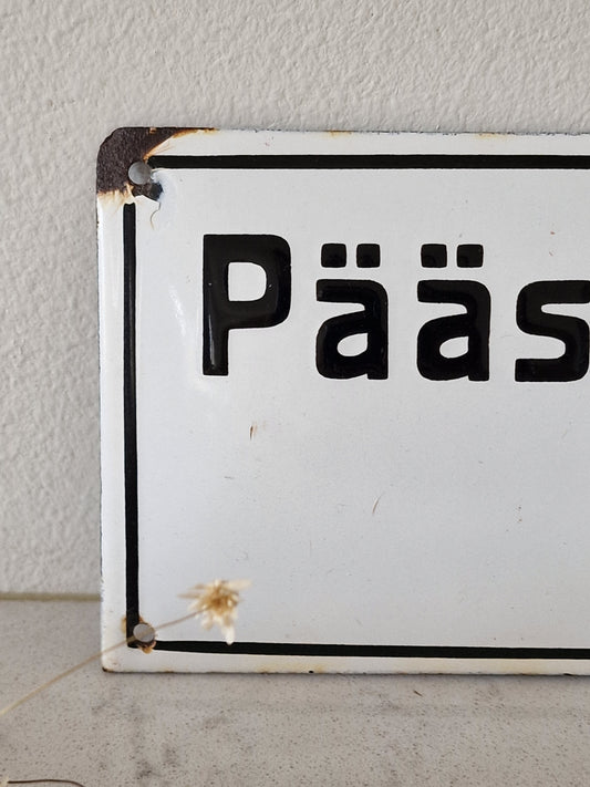 LoppuunmyytyPääsy asiattomilta kielletty -emalikyltti