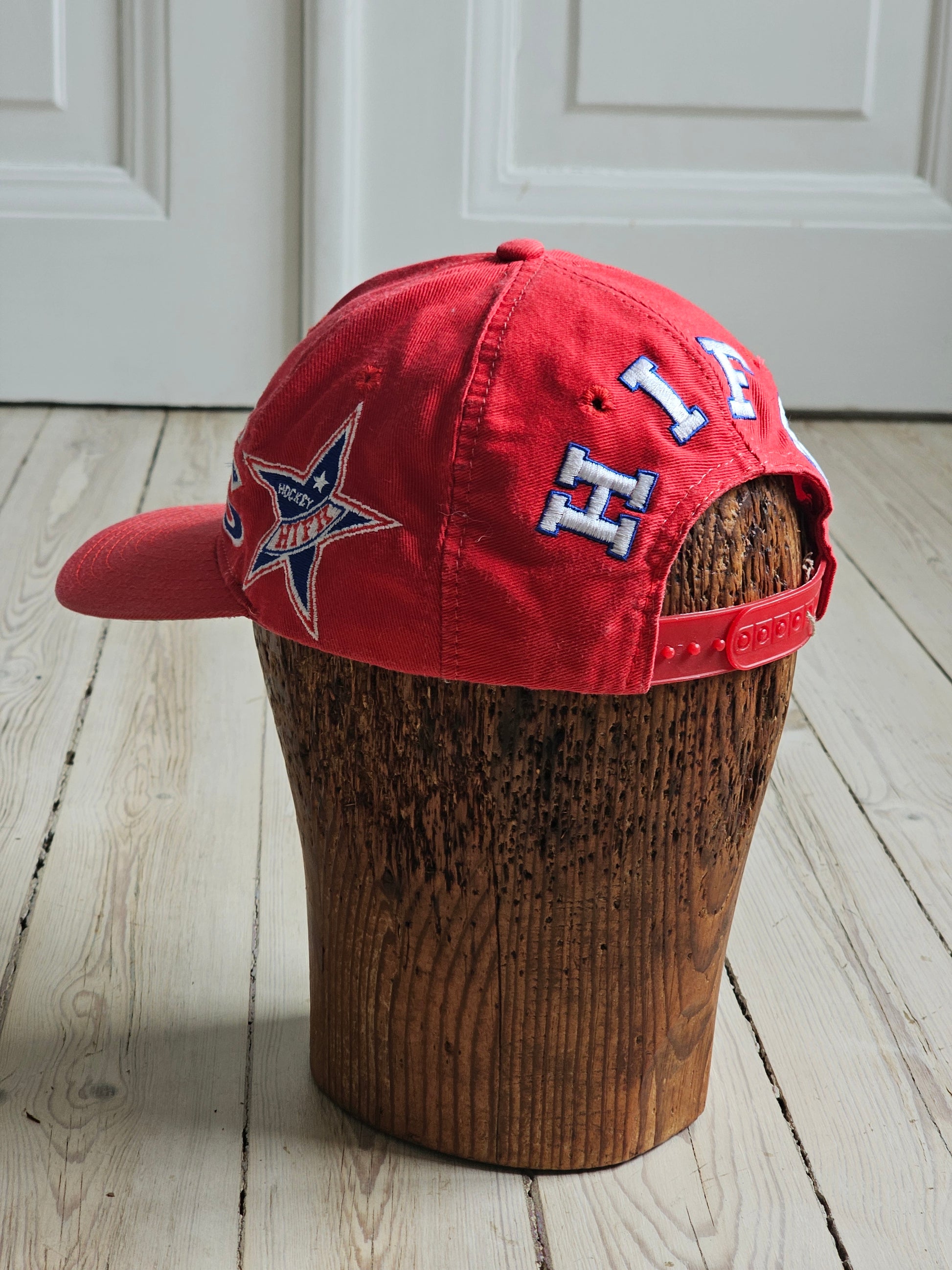 Tekstit ja sivun tähtilogo brodeerattu. Lippiksessä on takana säädettävä muovisolki. Lippis on puhdas, mutta lipassa löytyy käytönjälkeä.