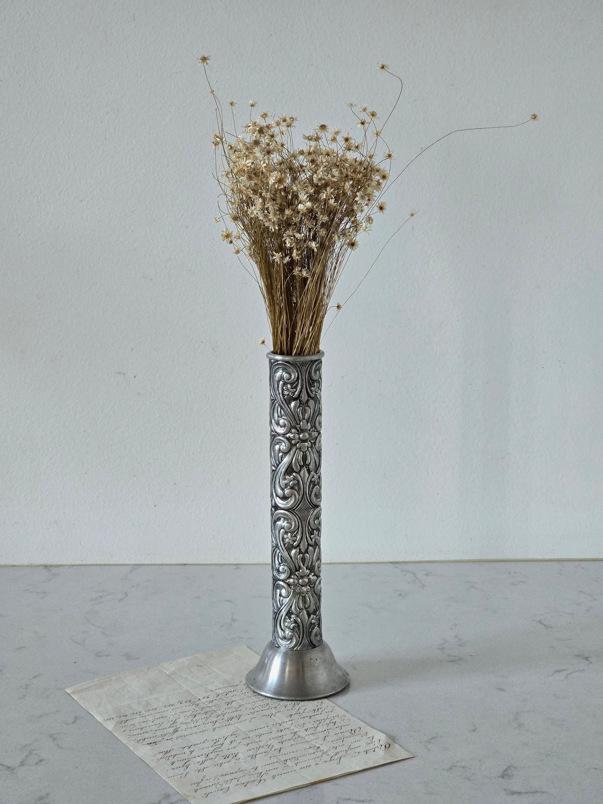 Koristeellinen kukkamaljakko, joka seisoo tukevasti pöydällä. Tähän saa kauniisti esim. leikko- tai kuivakukkia.