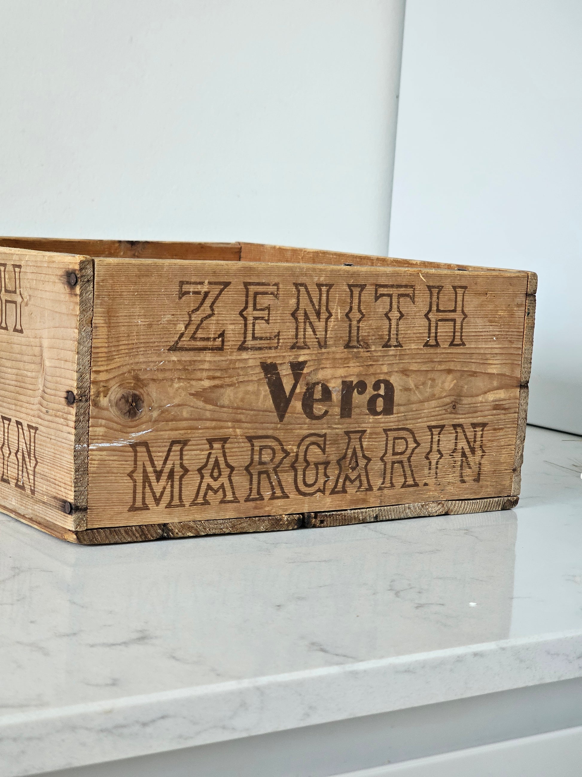 Ruotsalainen Vera Margarin -puulaatikko. Tämä vanha upeasävyinen laatikko on hyväkuntoinen ja sopii moneen käyttötarkoitukseen!