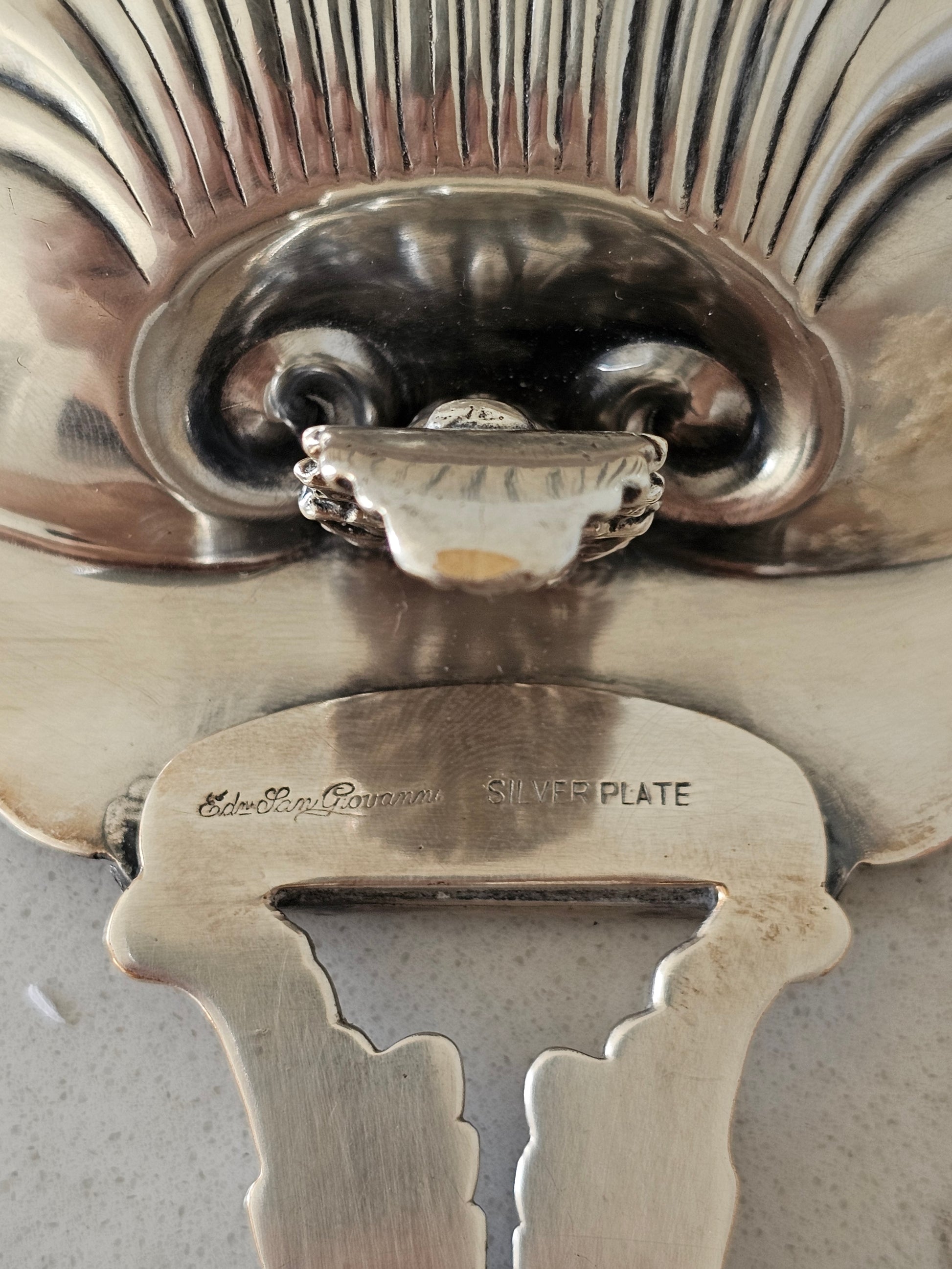 Iso simpukanmallinen murusieppari, joka on peräisin Brooklynista. Tällaista meille ei ole ikinä tullut vastaan. Simpukassa on kauniisti muotoiltu kahva ja se seisoo tukevasti pöydällä.