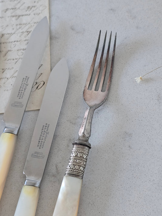Helmiäisveitsiä ja -haarukka