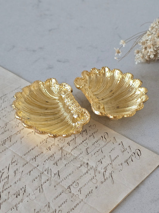 Kultaisen värisiä simpukka-astioita