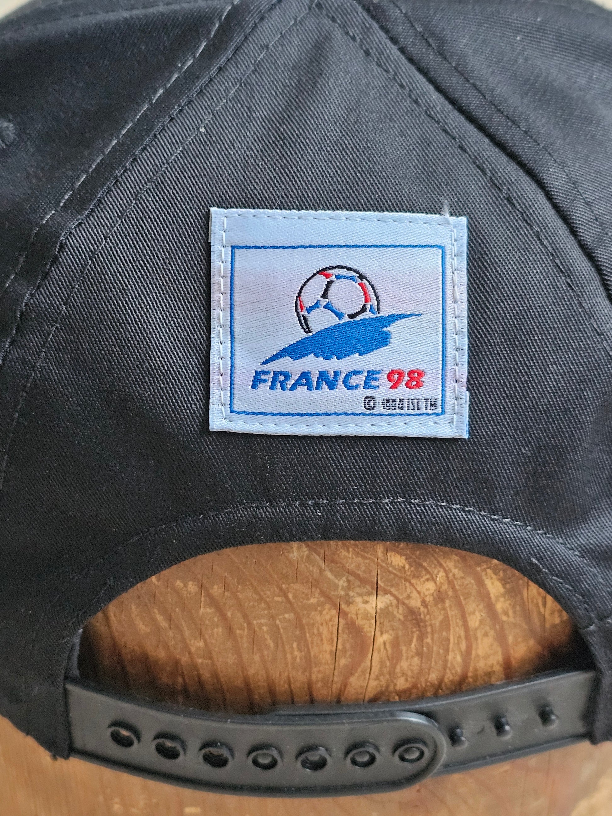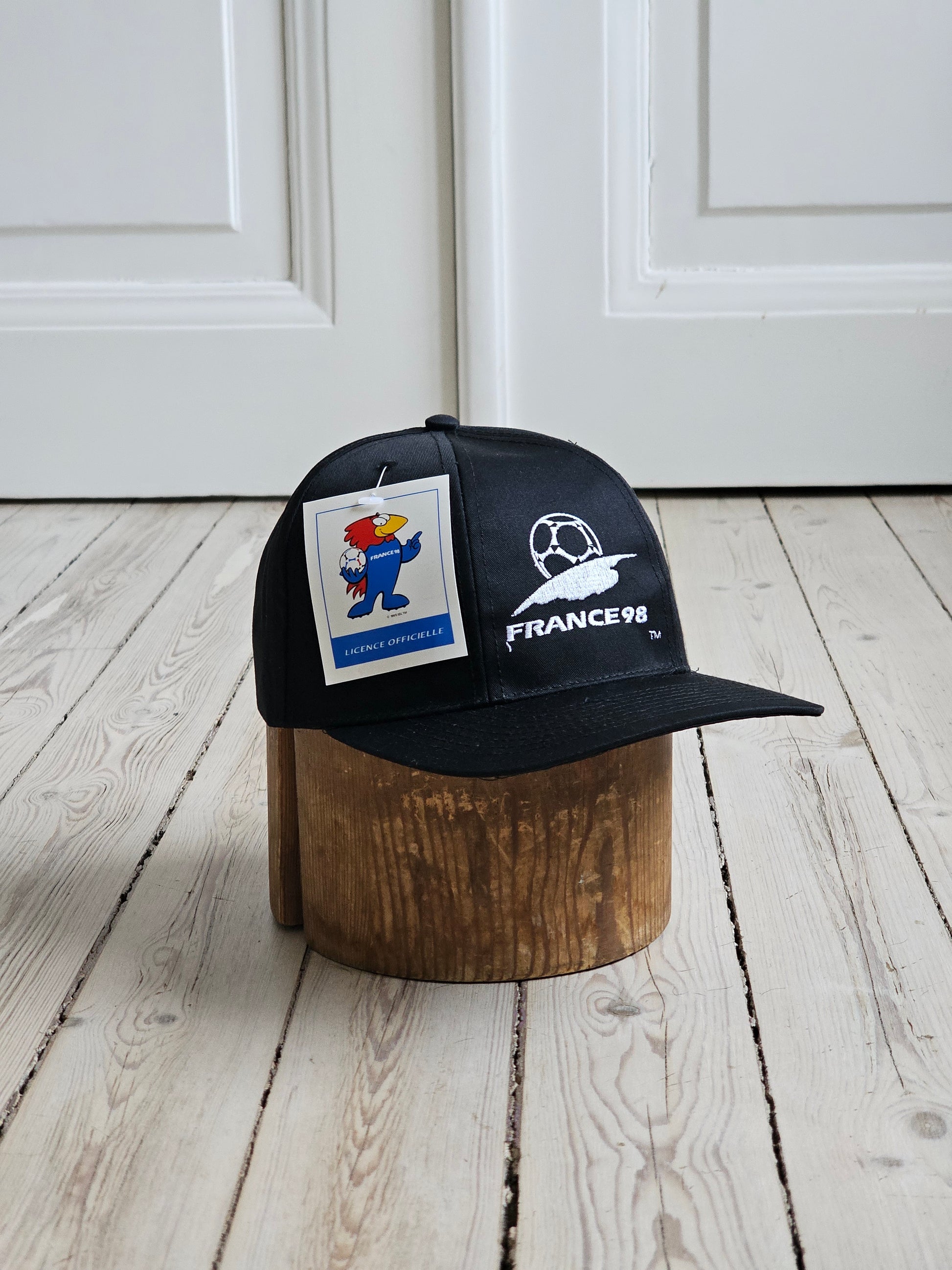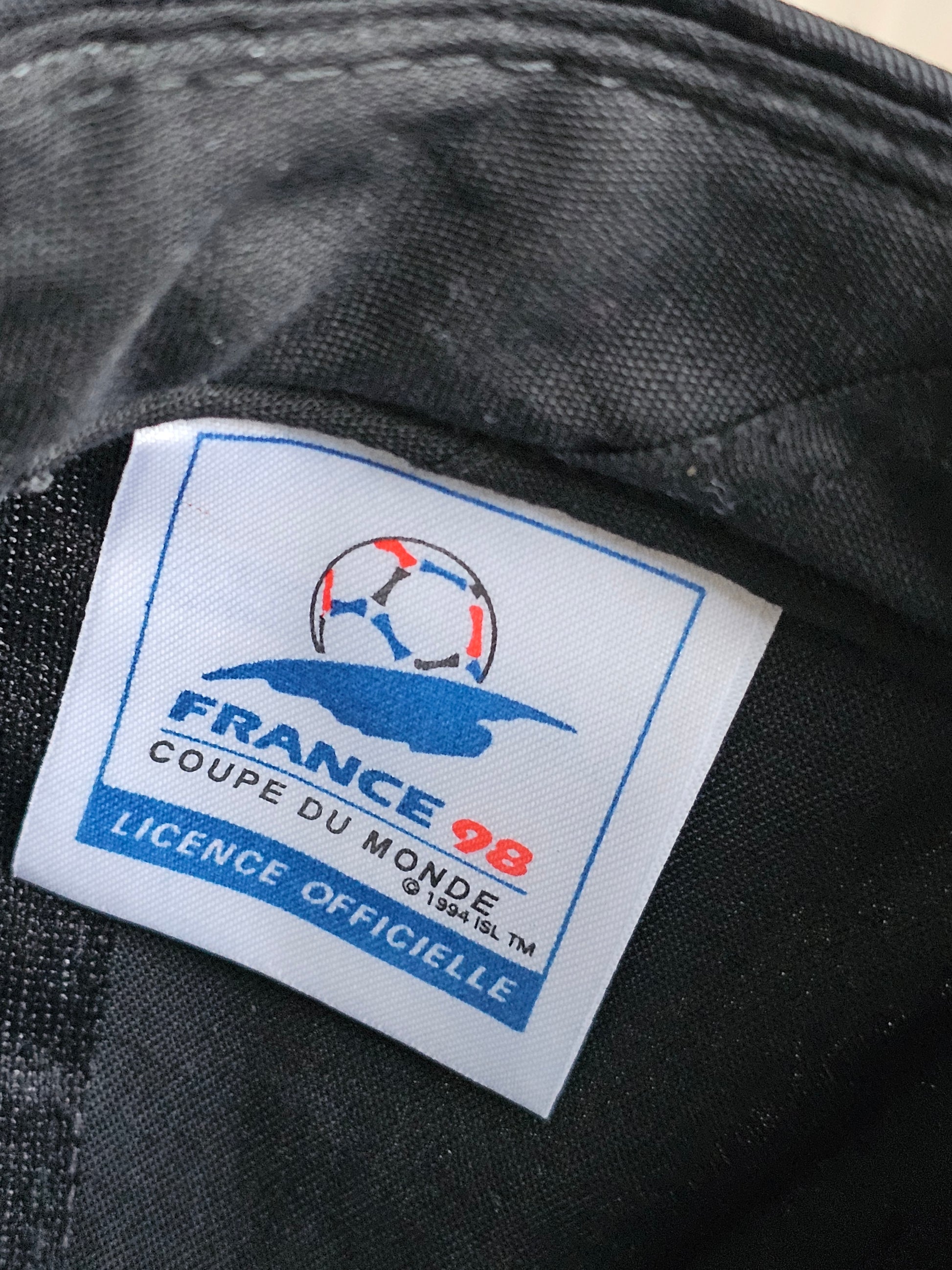Aito käyttämätön Ranskan jalkapallon MM-kisojen lippis vuodelta 1998. Lippiksessä on vielä valmistajan laput tallella!