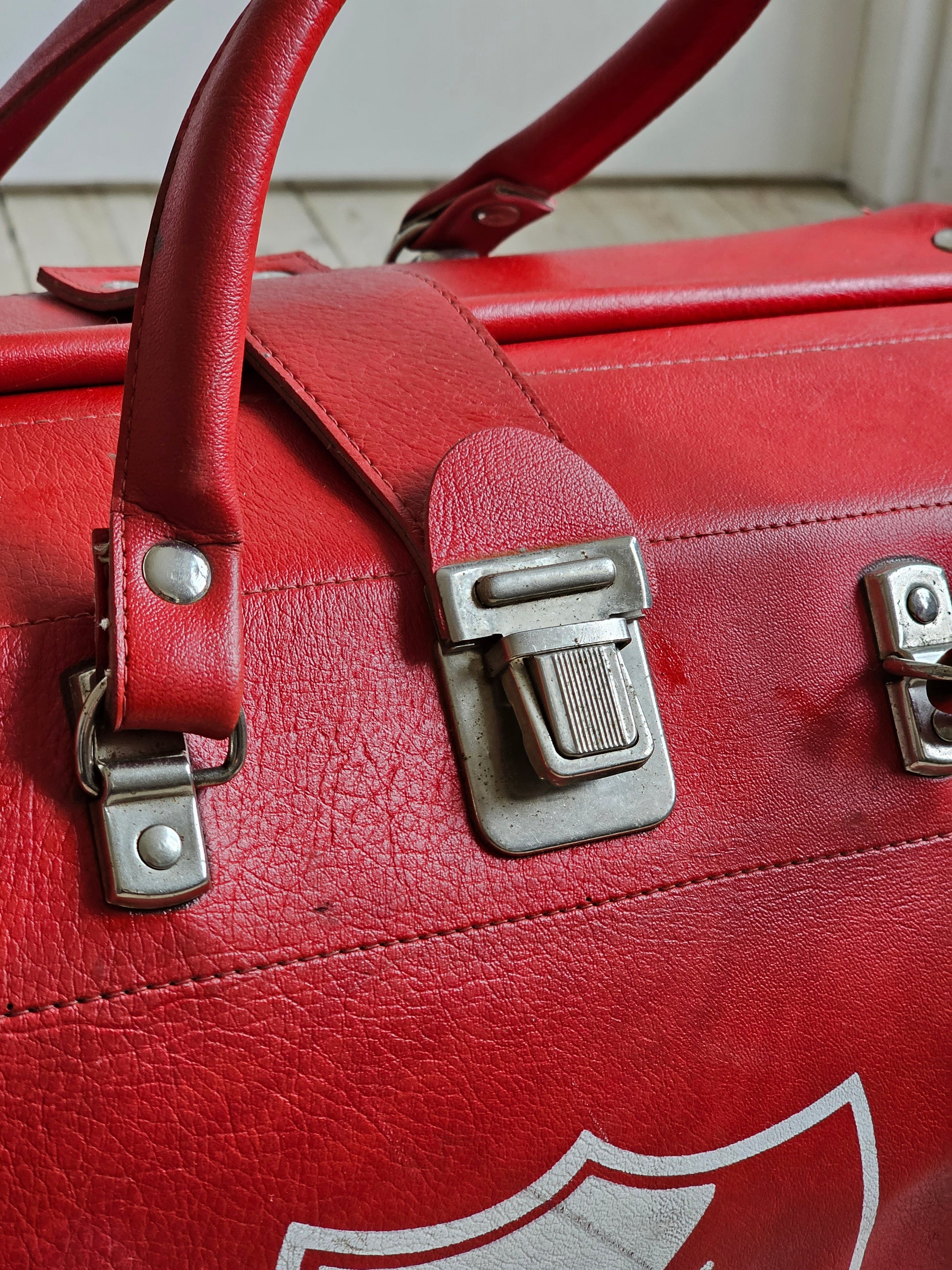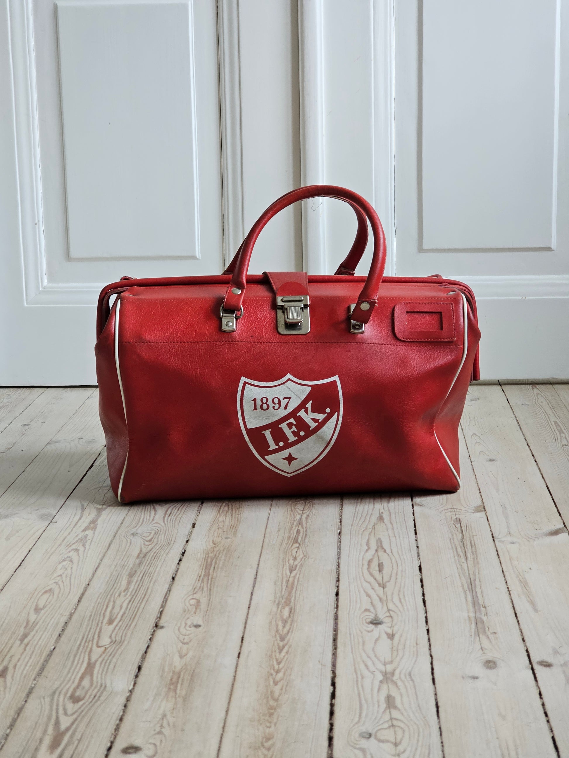 Uniikki IFK:n urheilukassi 70-80-luvulta. Materiaaliltaan kassi on tekonahkaa ja pohjassa on vanerivahvikkeet. Laukussa on iäntuomaa kulumaa, mikä näkyy kuvissa. Ikäisekseen kuitenki hyväkuntoinen.