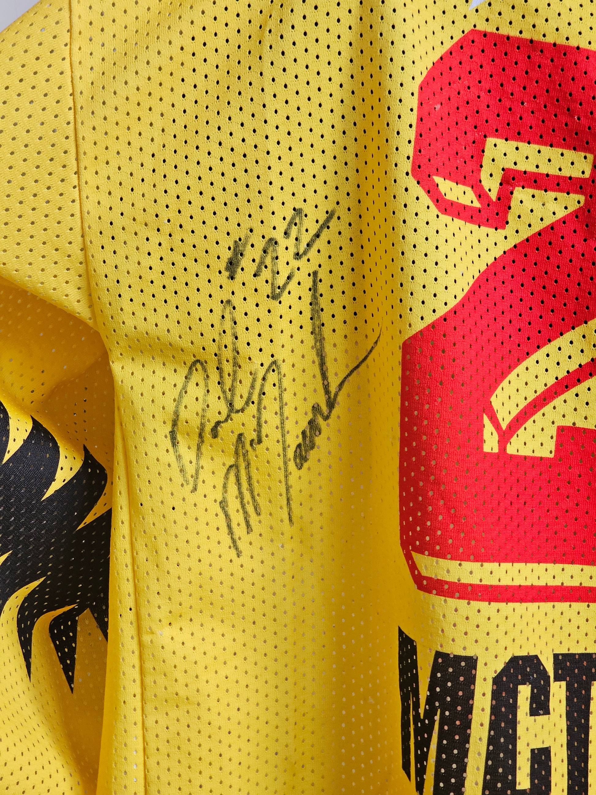 Paitan on painettu kaikki sen ajan mainokset ja selkään nimi ja numero. Selässä siististi McTavishin nimirjoitus. Paita on siistikuntoinen.