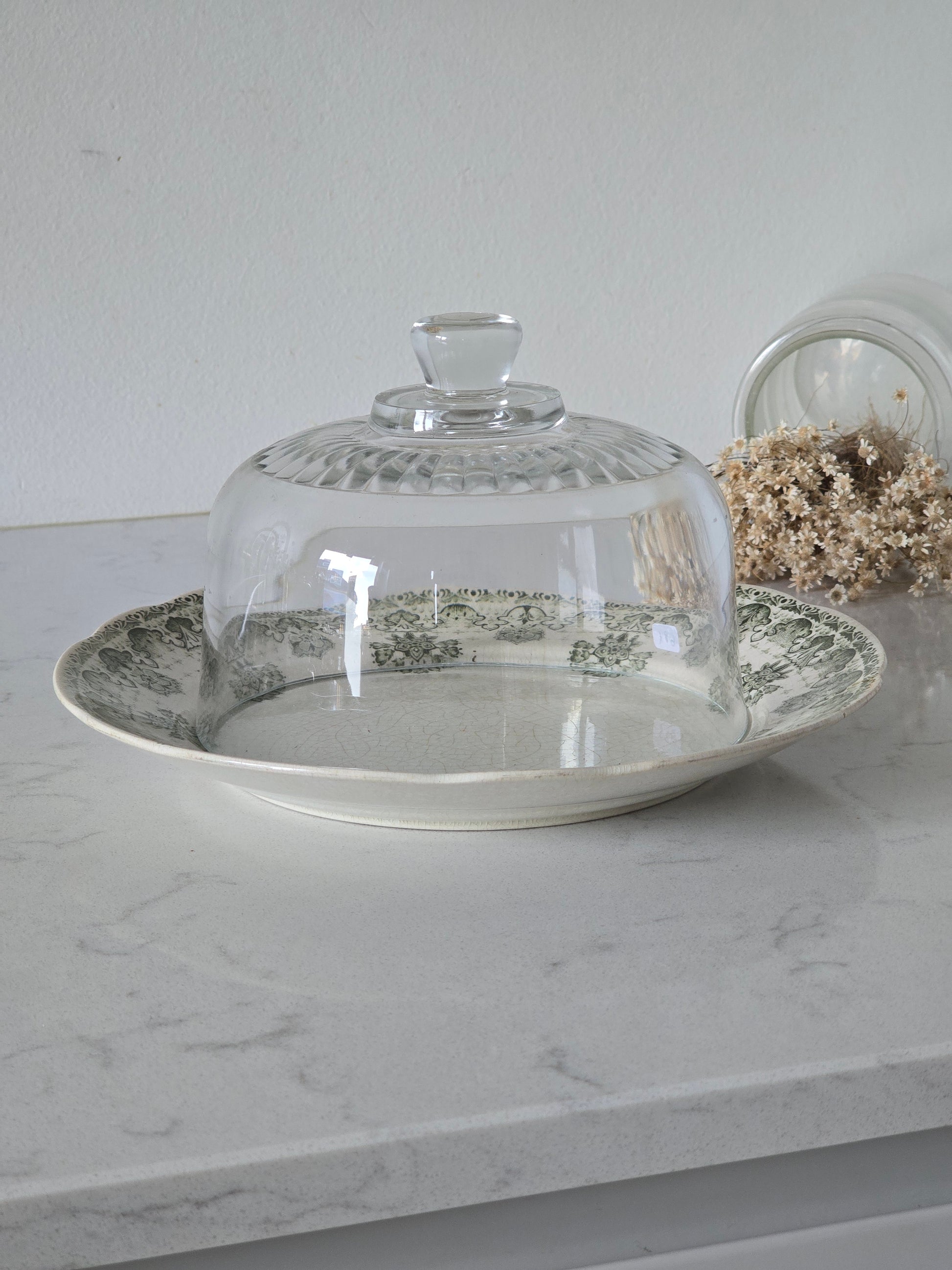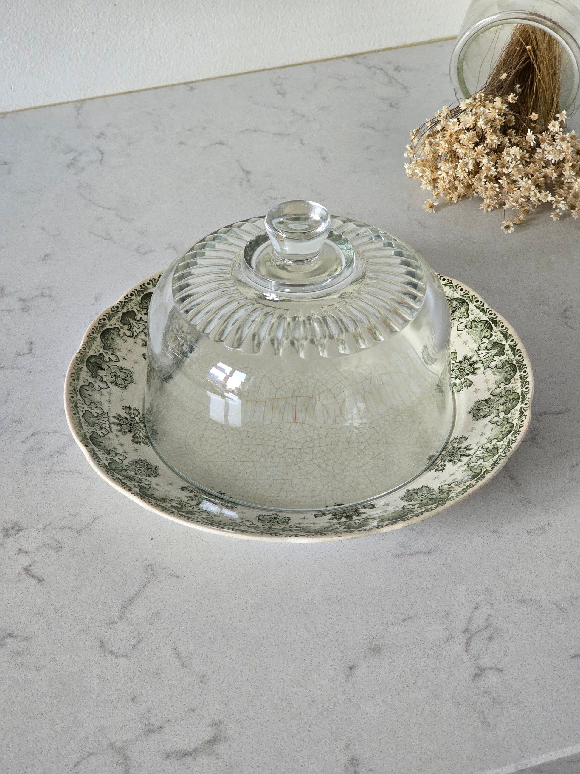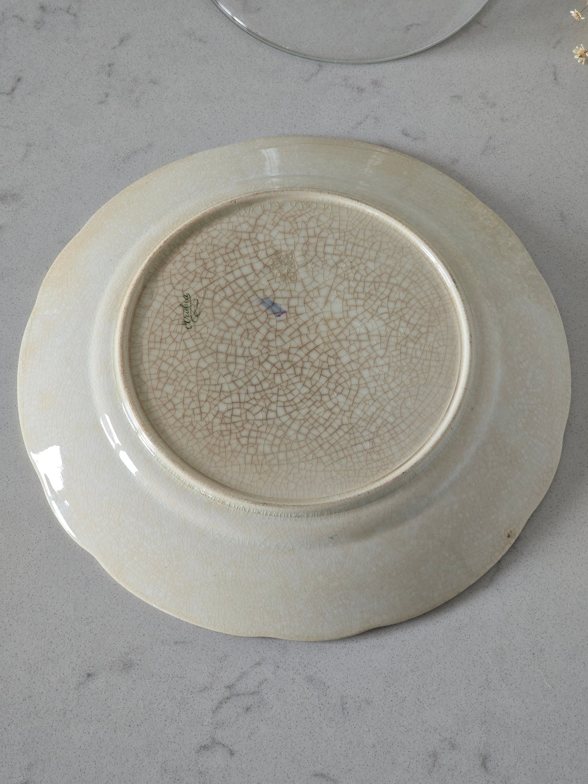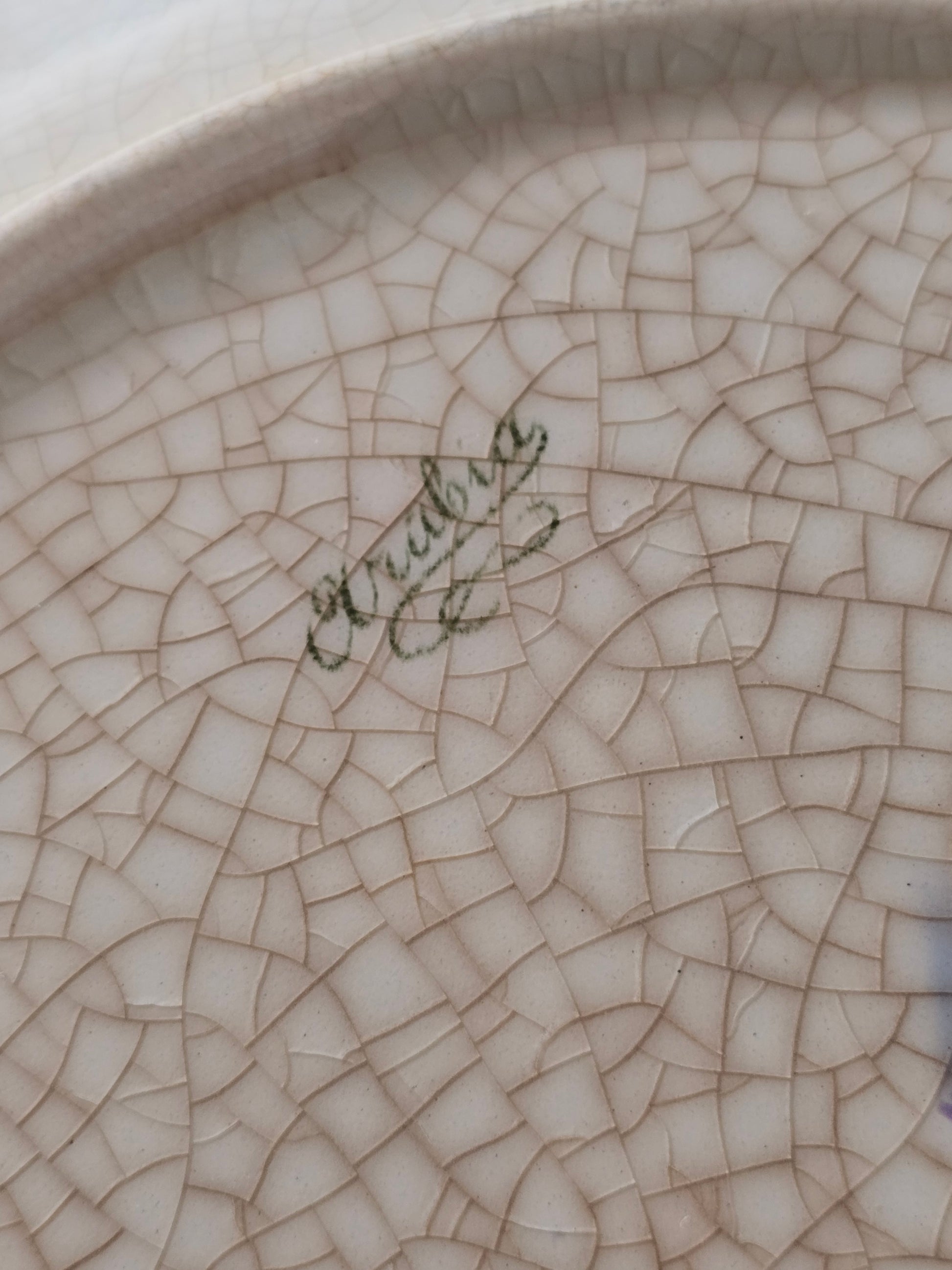 Vanha Arabian lautanen ja lasikupu. Arabian lautanen on todella harvinainen, eikä mistään löytynyt vastaavaa. Selvityksen perusteella lautanen on 1900-luvun alkupuolelta. Pohjassa on värileima.