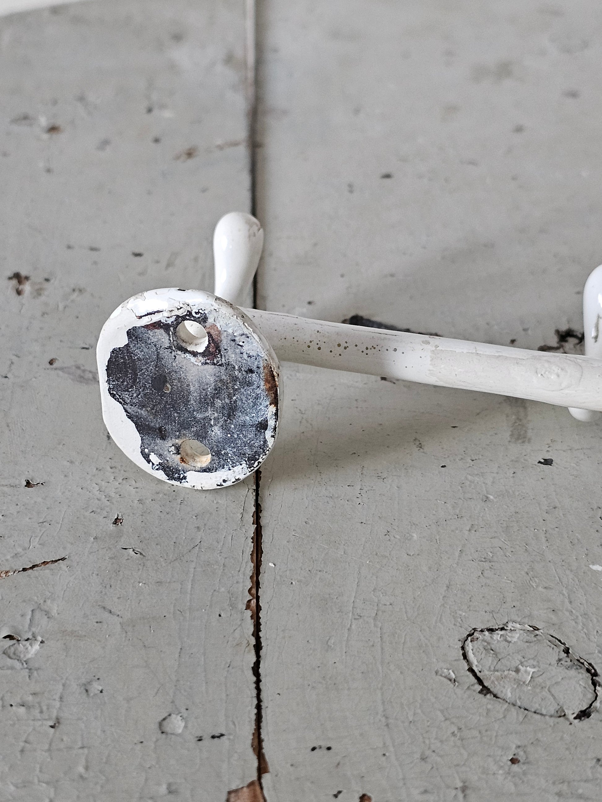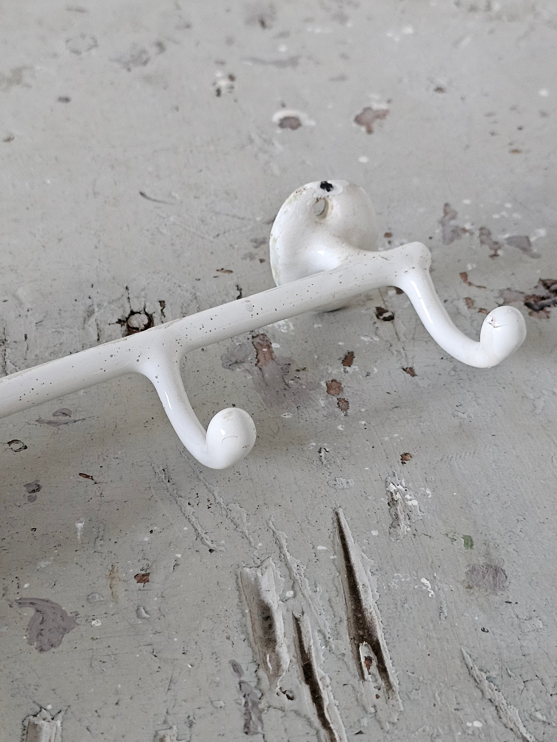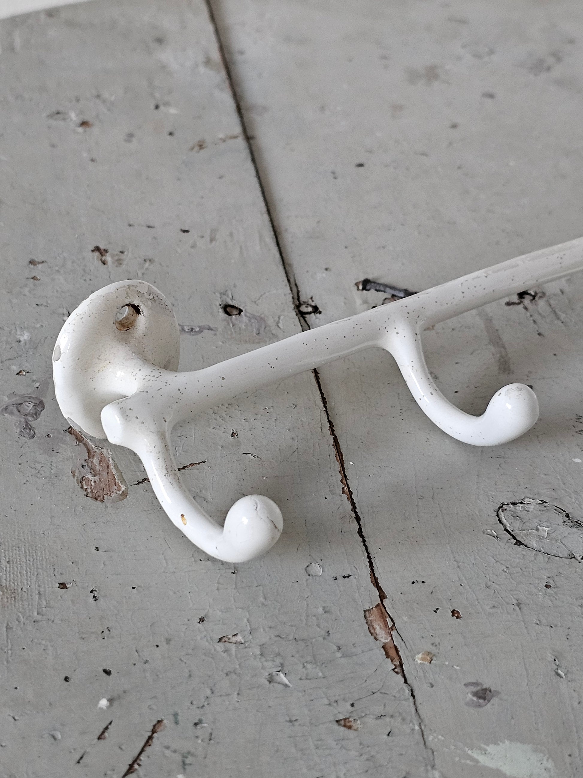 Näitä naulakoita on kaksi kappaletta ja emalipinnan kulumien kohta vaihtelee hieman yksilöstä riippuen. Molemmat ovat kuitenkin pääosin kuvan naulakon kunnossa.