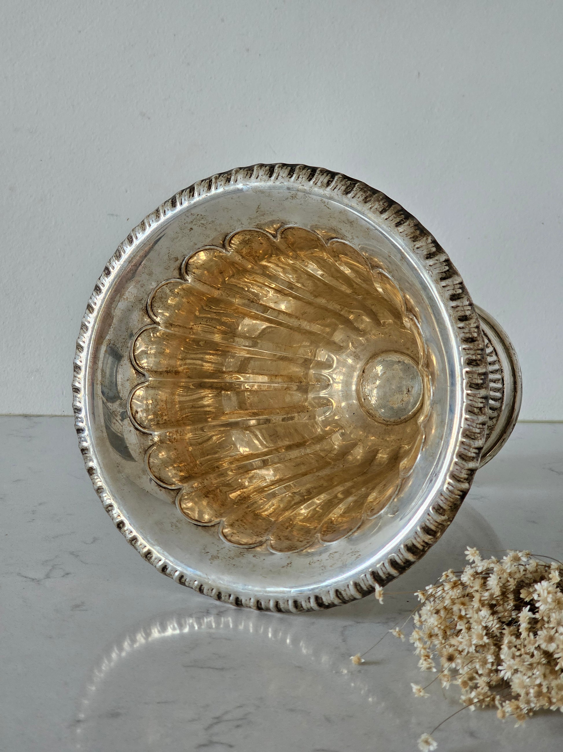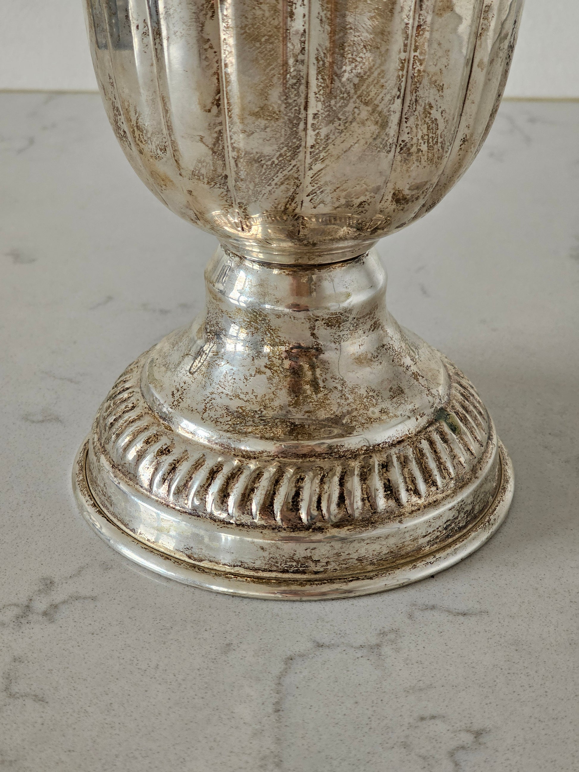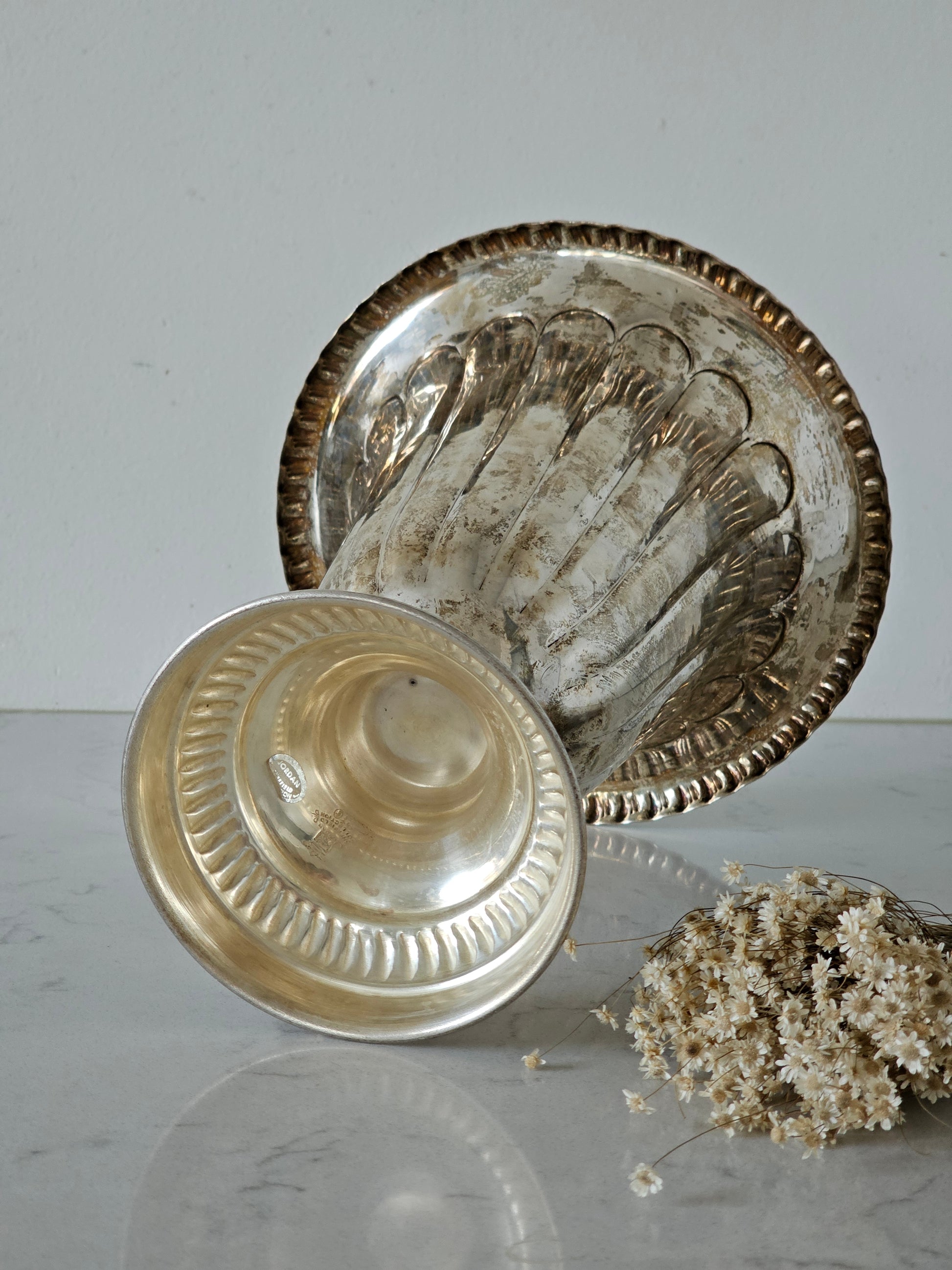 Upea metallinen vanha maljakko, joita on käytetty aikanaan myös hautausmaan kukka-asetelmiin. Näin isoja maljakoita tulee harvoin vastaan. Pohjassa leimat Jordan Sheffield Collection.