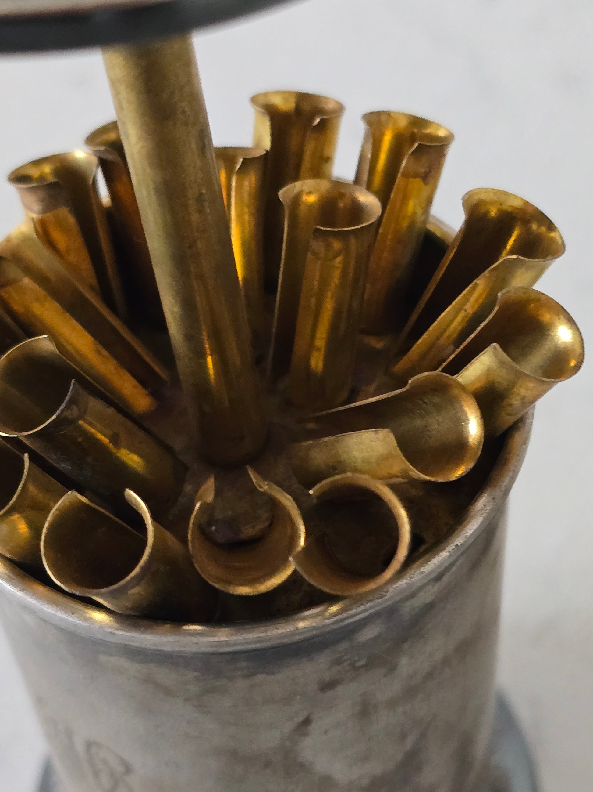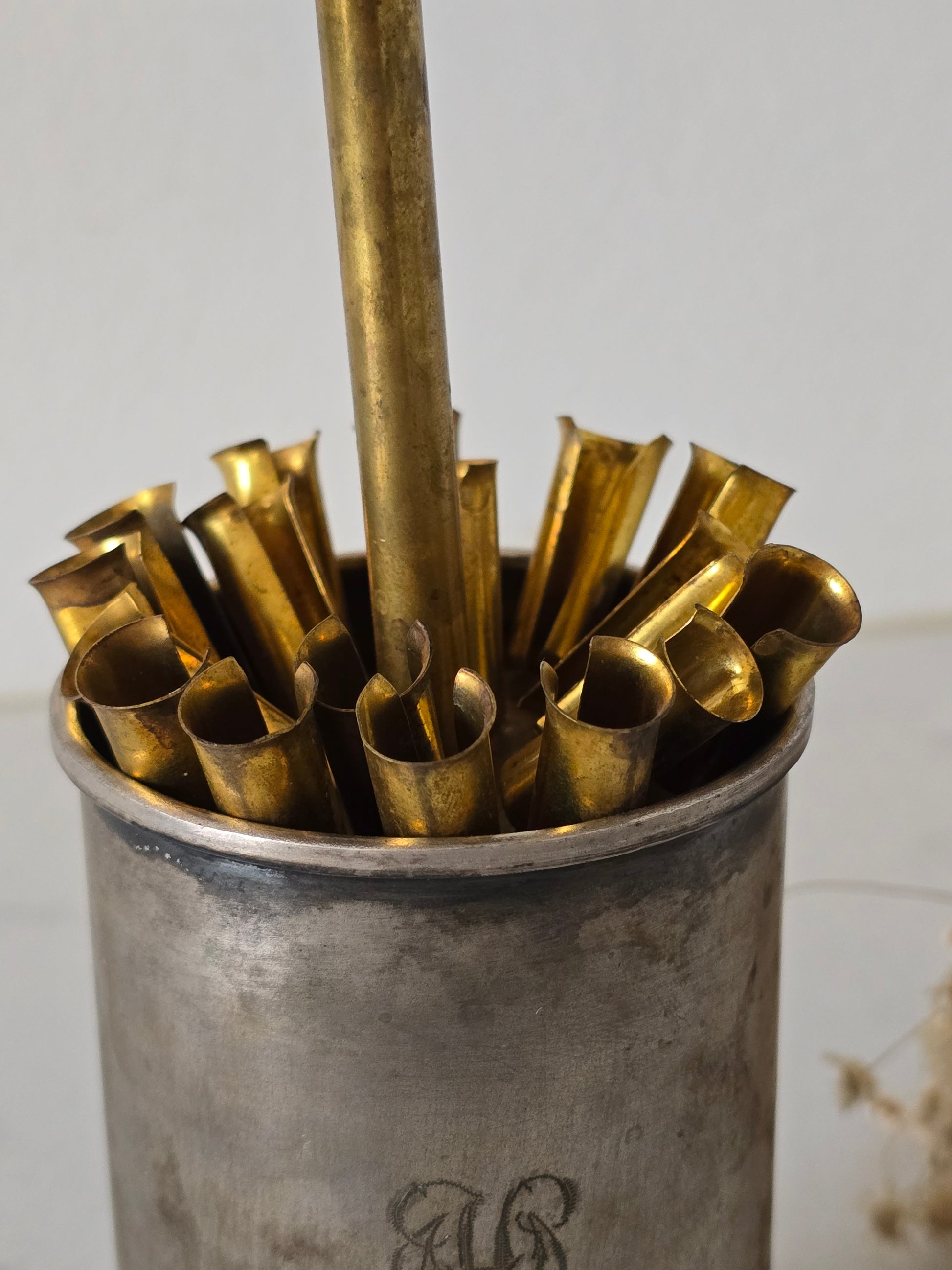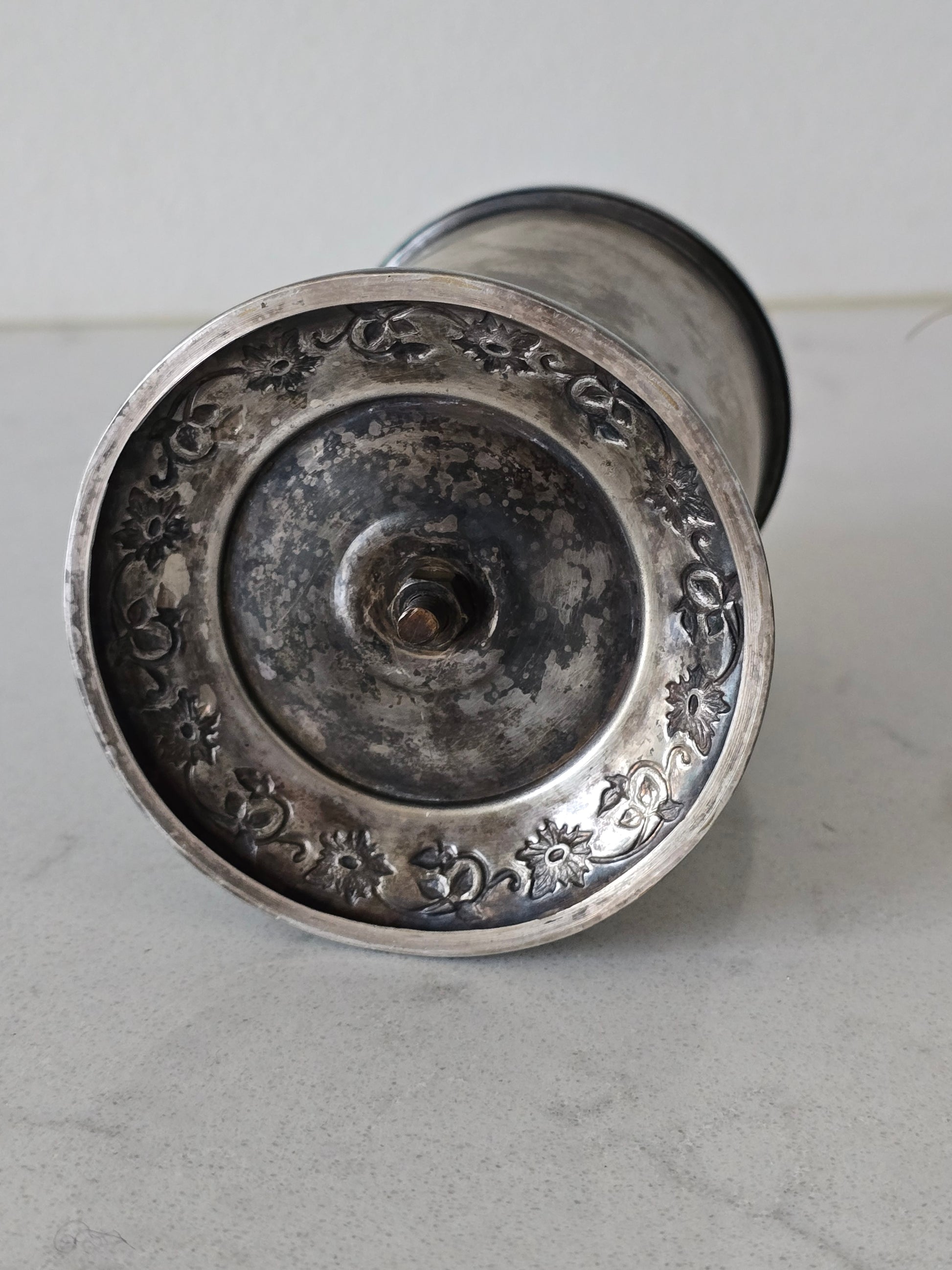 Vanha kauniisti koristeltu savukerasia. Nostamalla nuppia, avautuu savuketelineet. Pinnassa kaunis kaiverrus. Telineet ovat ajan kanssa löystyneet eli eivät ole tiukasti toisissaan kiinni. Palvelee kuitenkin käytössä normaalisti.