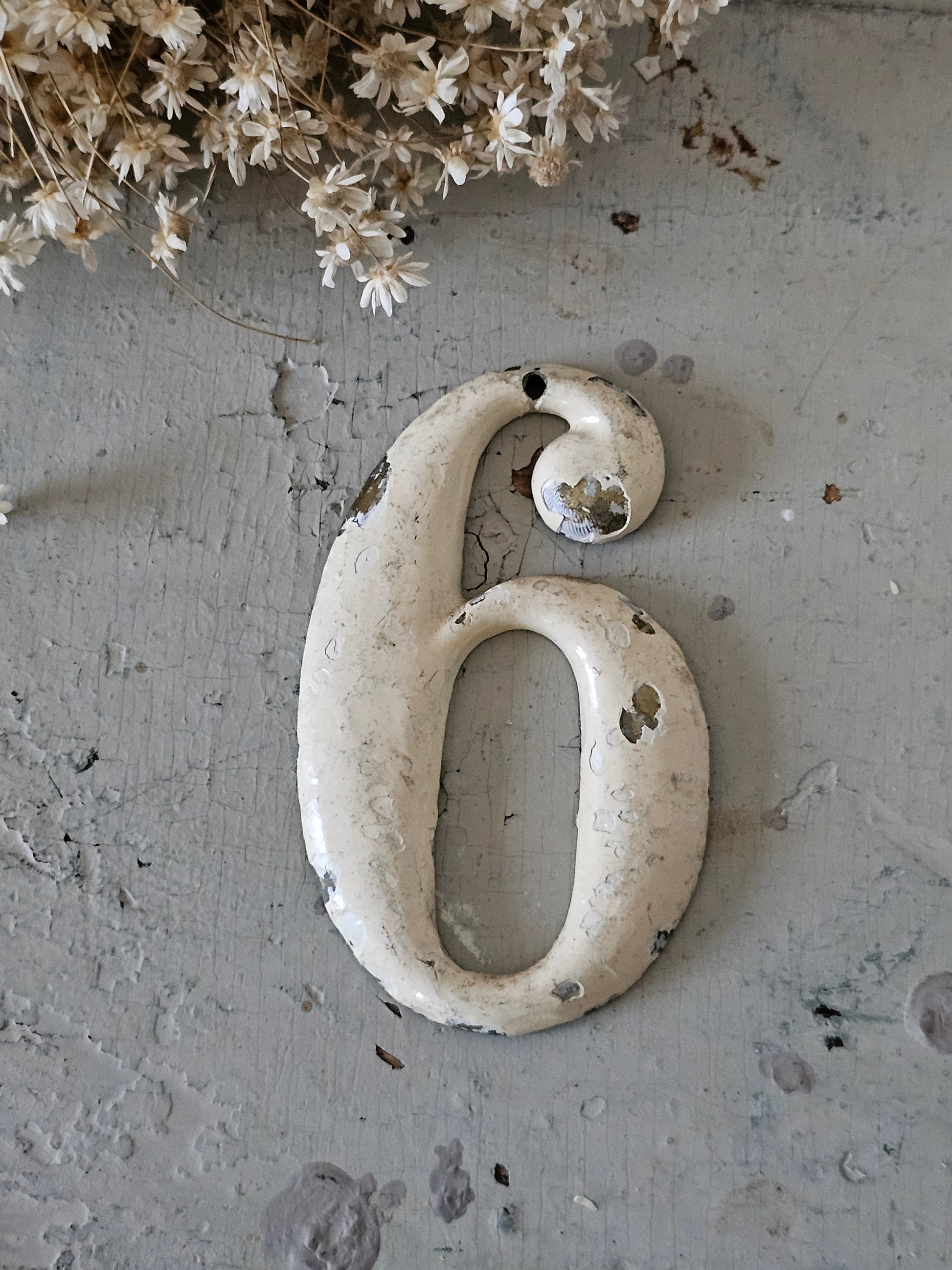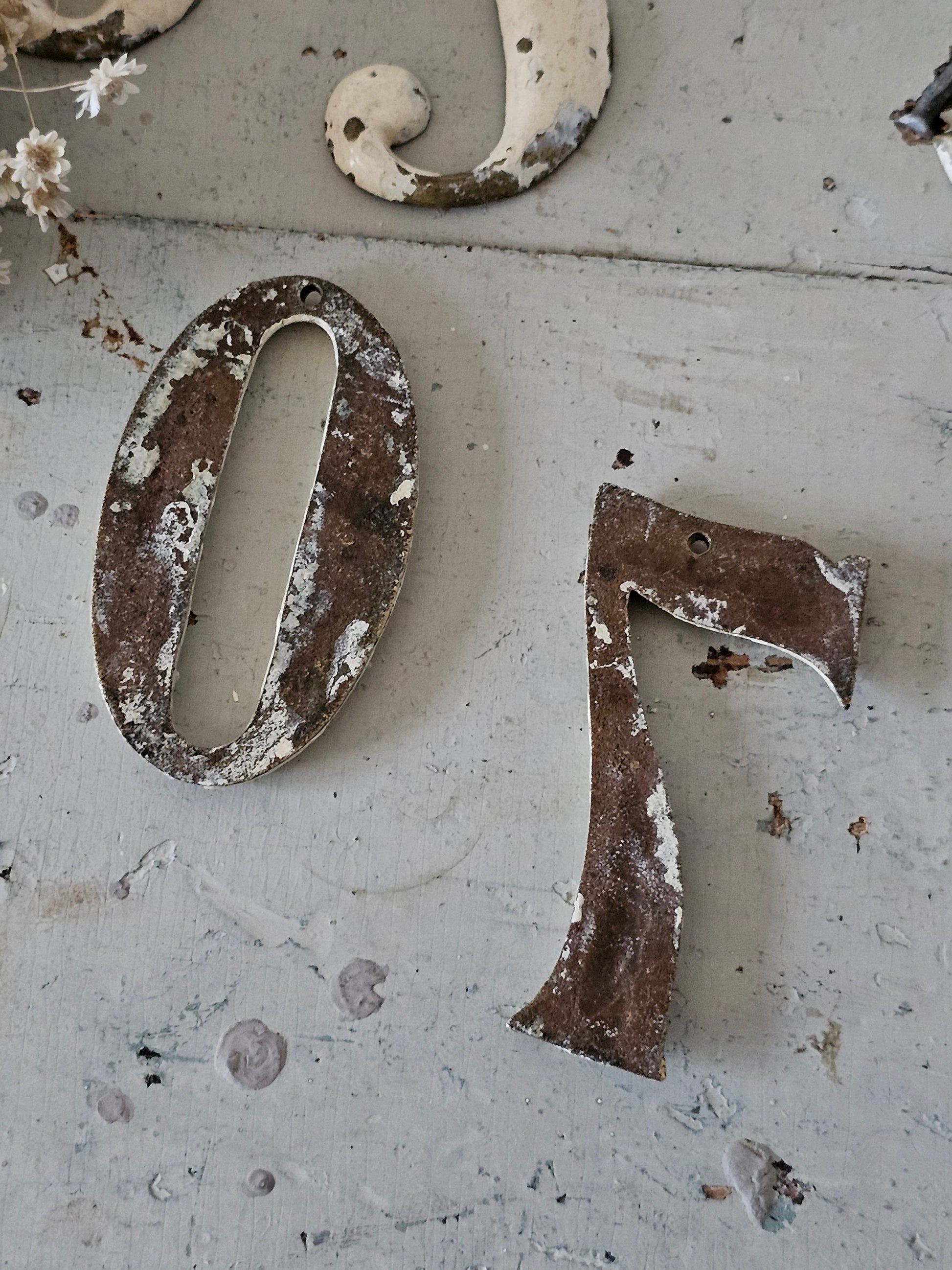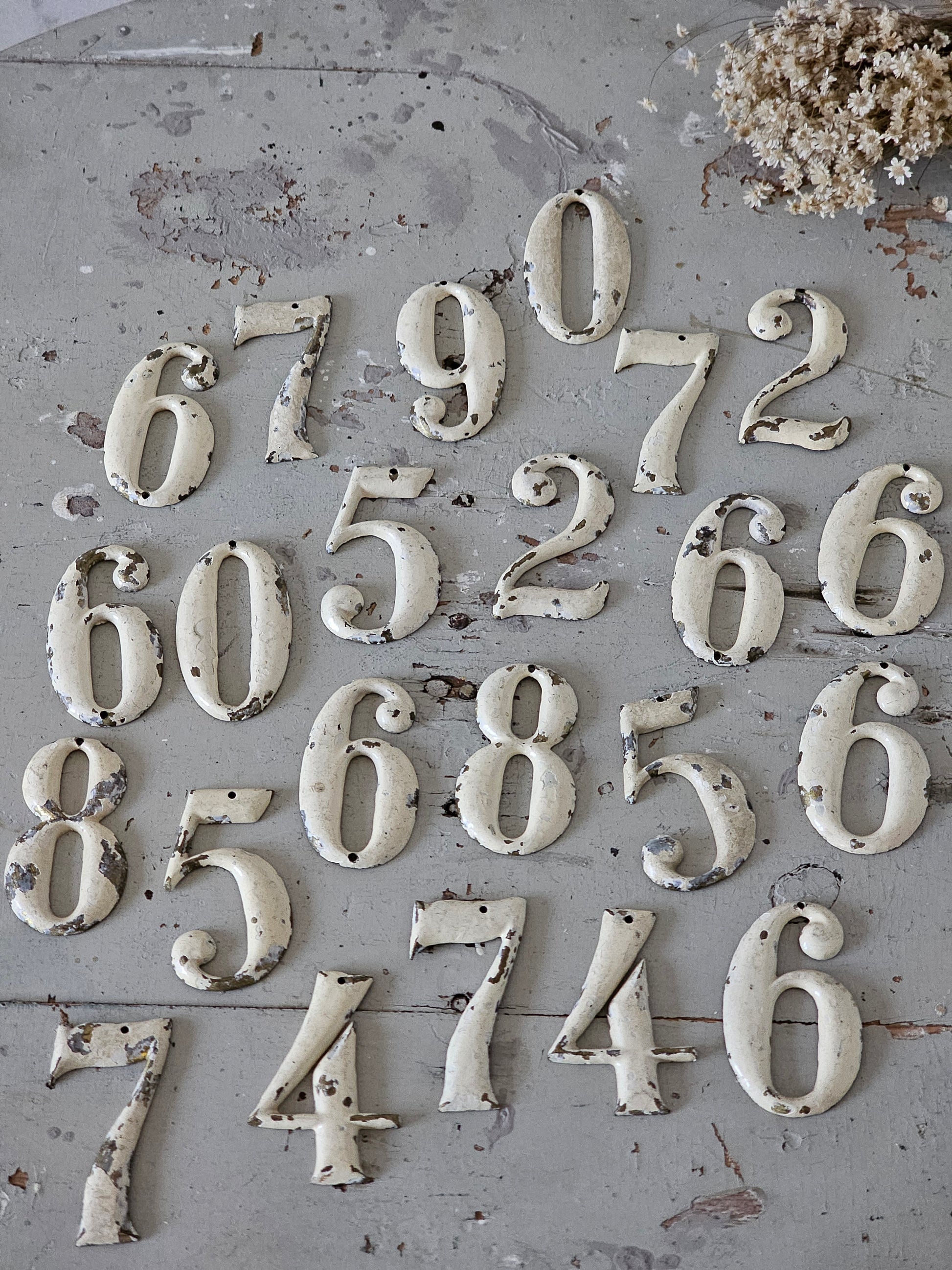 Vanhat valurautaiset numerot kirkosta. Numerot ovat kokoisekseen melko painavat. Pinnassa on kaunis kulunut maalipinta ja jokaisessa numerossa reikä, josta sen saa roikkumaan tai kiinni seinään. Kokoa näistä vaikka talonnumero rakennuksen seinään tai oveen.