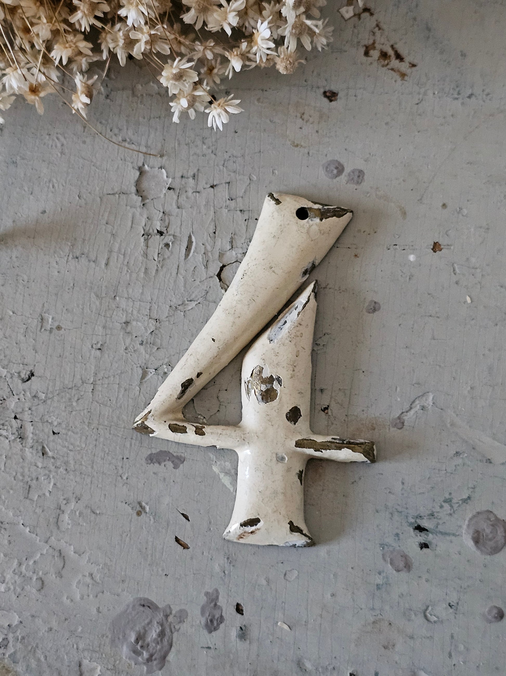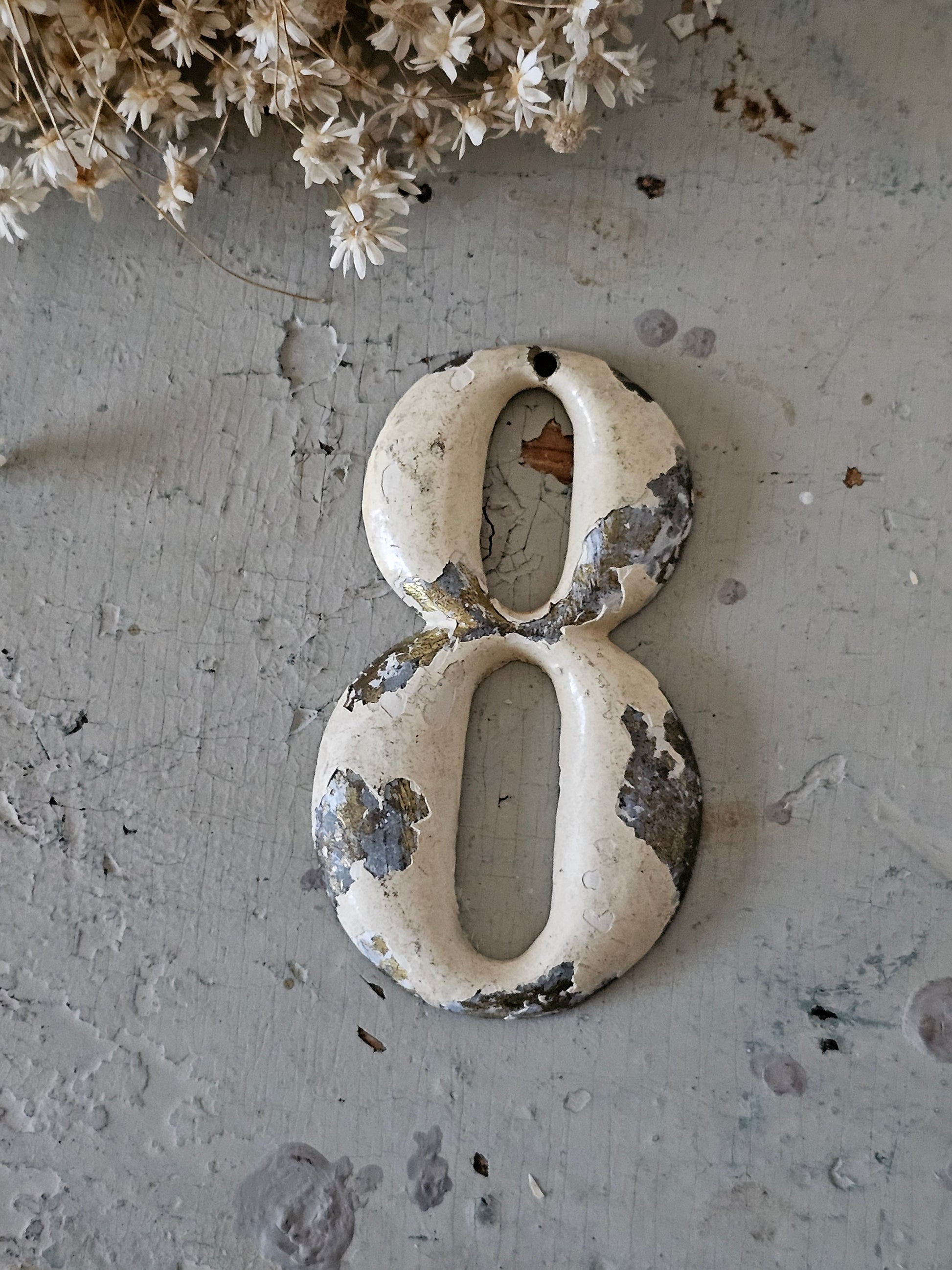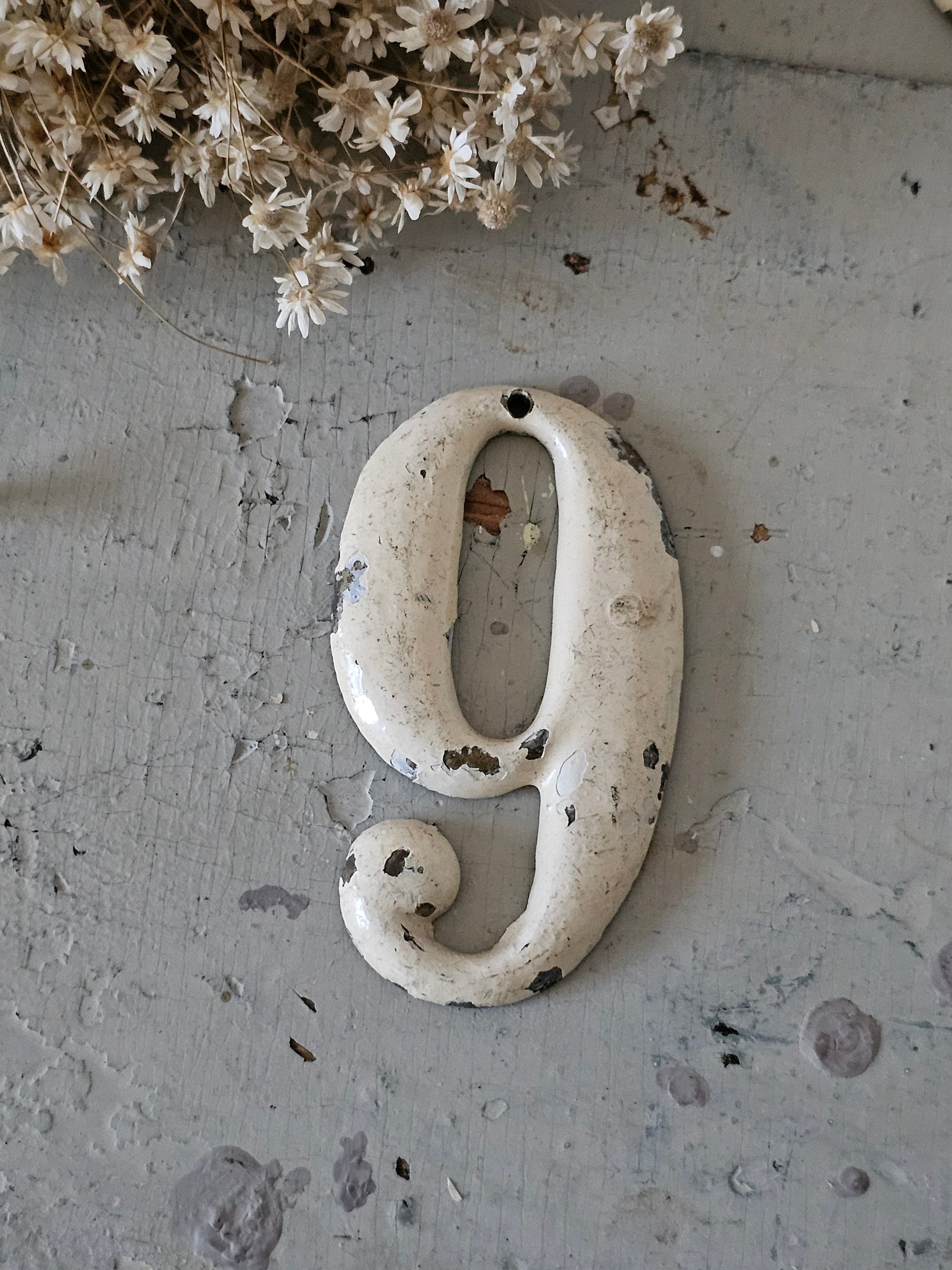 Vanhat valurautaiset numerot kirkosta. Numerot ovat kokoisekseen melko painavat. Pinnassa on kaunis kulunut maalipinta ja jokaisessa numerossa reikä, josta sen saa roikkumaan tai kiinni seinään. Kokoa näistä vaikka talonnumero rakennuksen seinään tai oveen.