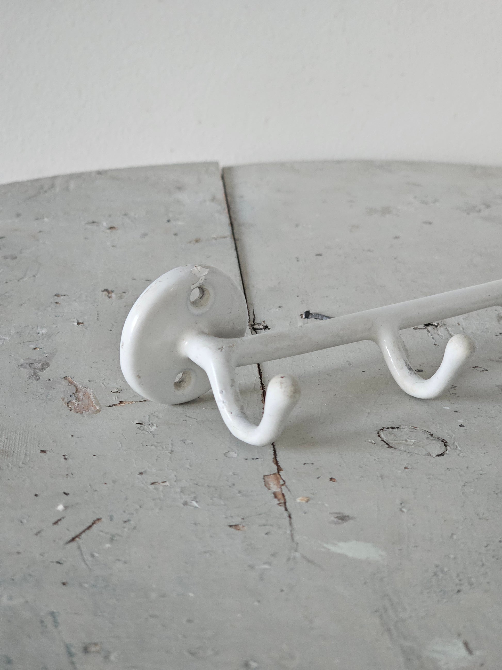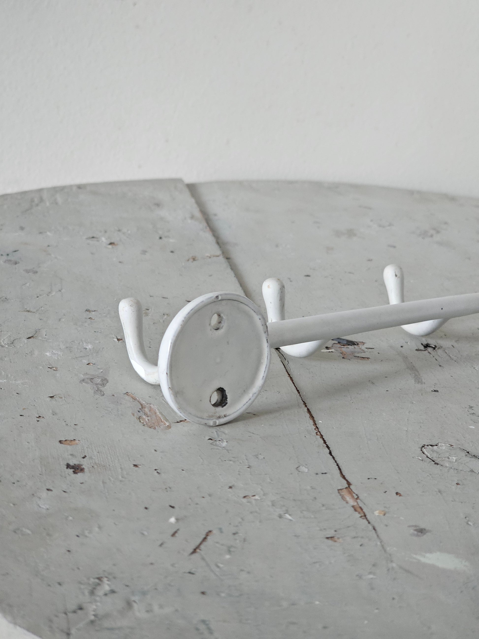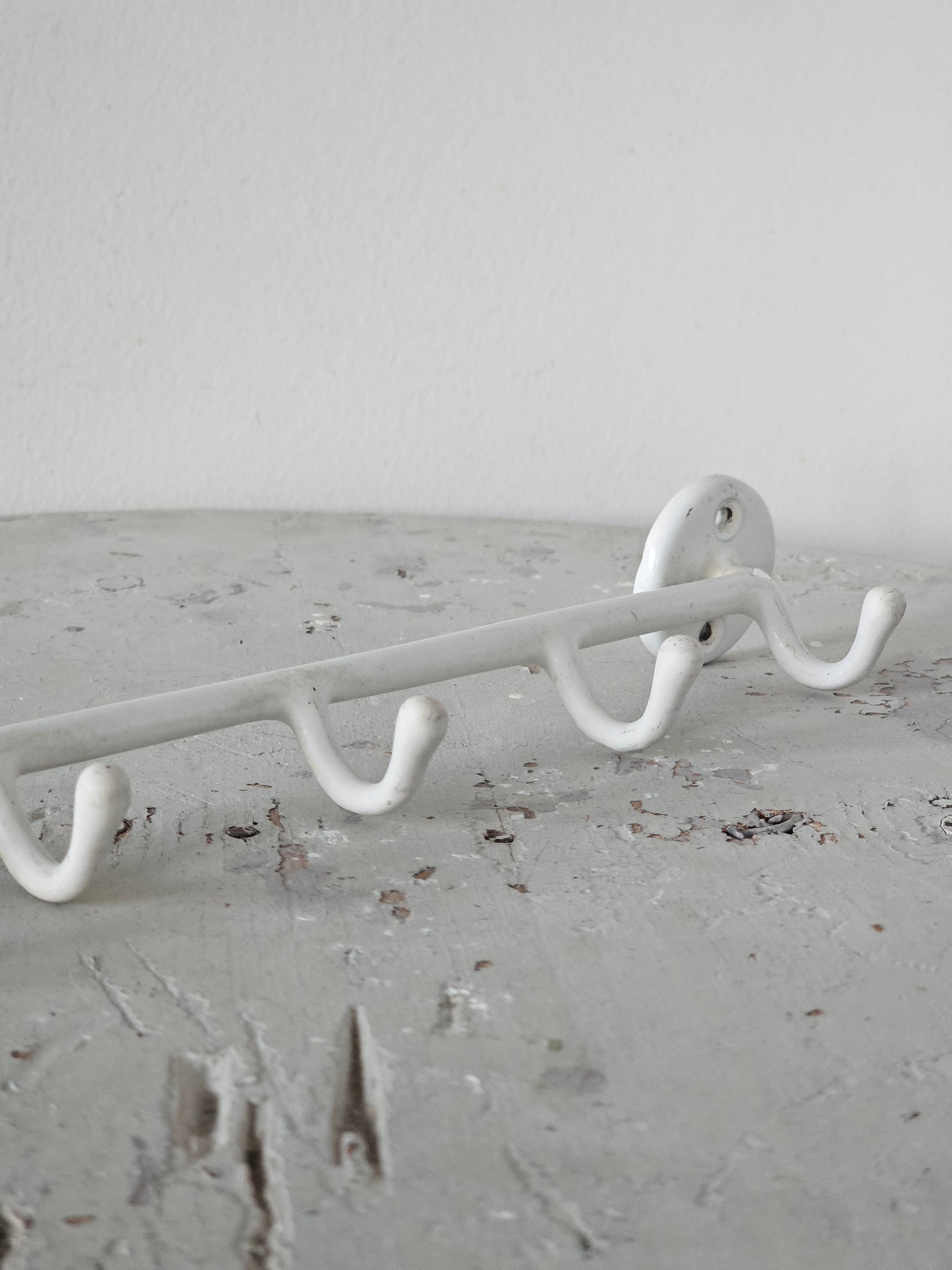 Vanha Wärtsilän valmistama emalinaulakko 1950-luvulta. Tämä 6-koukkuinen naulakko on säilynyt muuten hyvässä kunnossa, mutta kiiltävä pinta on ajan saatossa muuttunut "mataksi"